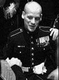 Marine Lance Corporal Mark Beyers of Elma, N.Y., was severely injured by an improvised explosive device (IED) while on foot patrol with the 3rd Battalion, 25th Marines in Hit, Iraq, in August 2005. He lost his right arm and right leg in the blast and sustained damage to his hearing.