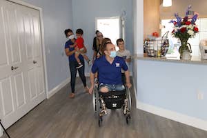 Since being injured, Joshua has welcomed three more children into this life, sons Brydon and Darren, and daughter Cadence, and married his wife Claudia de Carvalho Pinto. Though Joshua’s mental and physical recovery has improved, the obstacles he faced in traditional housing remained. In his previous home, he could not access many rooms or the bathroom while in his wheelchair, and performing household tasks were a challenge. Joshua says his mortgage-free, specially adapted custom home with an open floor plan, wide doorways, and an accessible shower gives him a sense of security for his future. Without the stress of living in an inaccessible home, he has more time to pursue a career as a counselor or start a nonprofit to support other Veterans. Now that Joshua has more independence within the home, Claudia will have more time to pursue a college degree.