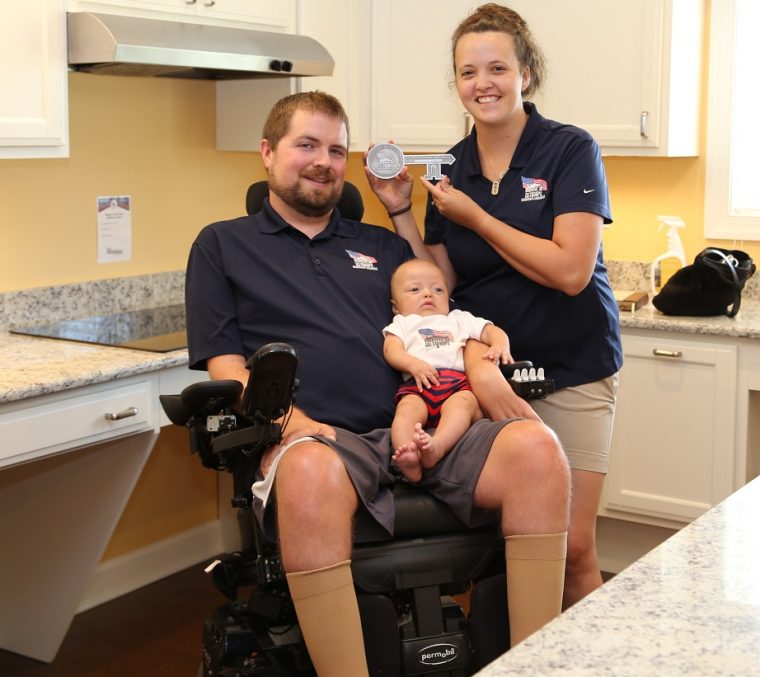 Timothy and Robyn received their Homes For Our Troops home in August 2016. The home greatly enhances their quality of life. Since the home has complete wheelchair access, Timothy is able to move freely and interact with family members throughout the entire home. The adapted features such as roll- in shower and roll-under sinks help with his morning routine. A key feature of the home is the special track-lift system, since lifting Timothy in and out of his power chair previously caused much strain on Robyn’s back.