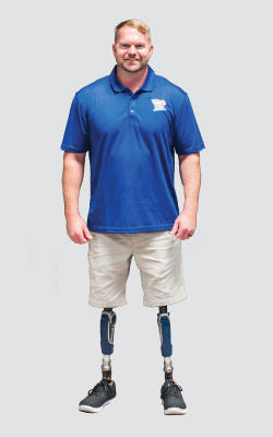 Jordan spent several years undergoing surgeries, rehabilitation, physical therapy, and learning how to use prosthetics at Walter Reed Medical Center. He is now a stay-at-home father and baker for his and his wife Amanda’s cookie business.