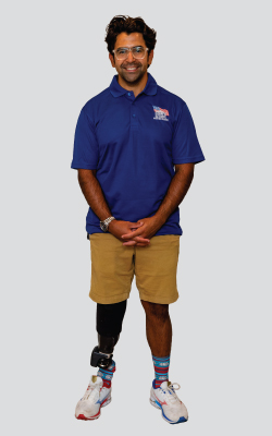 Once back in the United States, Juan moved quickly through his rehabilitation. By late December, he received his first prosthetic. Through the Center for the Intrepid, Juan was able to get involved with adaptive sports, including sled hockey, wheelchair basketball, hand-cycling, and eventually upright cycling. “It was with the help and encouragement from my family, friends, and therapist that I was able to get into the right mindset and not let my injuries keep me from moving forward and living a life filled with adventures and achievements,” he says.