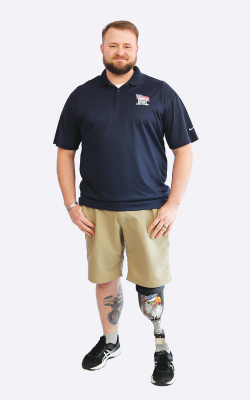 Brandon spent two years recovering at Walter Reed Medical Center before returning home to Massachusetts. After four years of pain and a low quality of life trying to keep his left leg, Brandon made the difficult decision to have doctors amputate his lower left leg. He opted for an experimental surgical procedure called an Ewing Amputation at Brigham and Women’s Hospital in Boston. He is the second person to undergo this amputation surgery, which gives him the ability to control a robotic prosthetic with his brain, enabling him to perform complex actions and feel sensations.