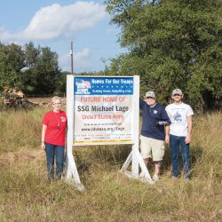 - Johnson City Record, July 3, 2019 – With motorcycle and Comal County sheriff escort, Staff Sergeant Michael Lage and his family were welcomed by cheers of well-wishers as they pulled into the driveway of their new home Friday, June 7, 2019. Homes For Our Troops (HFOT) presented him with a new, fully furnished custom home with special adaptations to meet his needs as an injured Soldier.