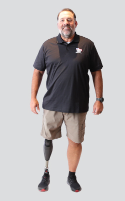Daniel and his wife, Kristen, live full-time in their recreational vehicle, a lifestyle they enjoy, yet one that comes with many obstacles. With a small shower and steps into the vehicle, Daniel must always wear his prosthetic, making it difficult for him to rest and recover. He often worries about falling when transitioning through narrow spaces and doorways.