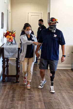 Gabe enjoys spending time with his wife, Rachel, and their four children, Matius, Layla, Noah, and Izabella. He works as an electrical superintendent for a solar company. In his free time, he enjoys riding his motorcycle, skydiving, barbequing, and working in his yard. Although Gabe does not let his injuries impact his active lifestyle, he knows wearing his prosthetic all the time will become less practical as he ages. In his previous home, he would often become discouraged because he could not maneuver his wheelchair around the narrow halls and doorways.