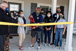 Friends with several HFOT home recipients, Gabe saw firsthand the impact a new specially adapted custom home makes for Veterans and their families. His HFOT home reduces the barriers Gabe experiences in his daily life. He is happy to have an accessible bathroom where he is able to shower safely. Another benefit is the open floorplan and accessible kitchen, where he is able to help his family cook and do housework. He is also able to access his yard more easily on the paved walkways surrounding the entire home.