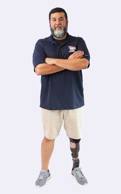On Aug. 24, 2010, Sergeant First Class Monreal was on his third combat deployment in Afghanistan as an Infantryman with the 2/327 Infantry Battalion, 101st Airborne Division, when he was hit by an 82mm recoilless rifle round, resulting in injuries to his abdomen, thighs, forearms, and the amputation of his left leg below the knee. After a three week stay at Walter Reed Medical Center, he was transferred to the Center for the Intrepid (CFI) in San Antonio. There, Gabe was assigned to the Warrior Transition Battalion (WTB) for eight months while he underwent physical therapy and recovery. After leaving WTB, he continued serving at Army North for three years before returning to CFI as the firearms training simulator (FATS) instructor. His job was to teach active duty and retired Service Members how to move and shoot again with their prosthetics and injuries. In December 2017, after over 20 years of service, Gabe retired from the military.