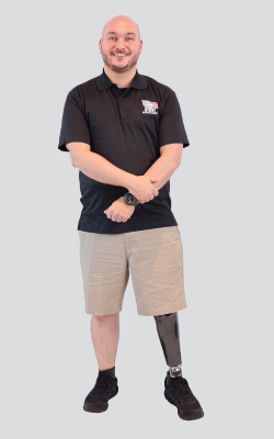 Tony works as an X-ray technician in his local community. He enjoys camping and spending time with his wife, Cynthia, and their daughter, Isabella. His current house has narrow doorways and hallways, limiting his ability to rest and recover in his wheelchair. Stairs to the upper level and uneven surfaces throughout the home pose trip hazards when Tony is wearing his prosthetic.