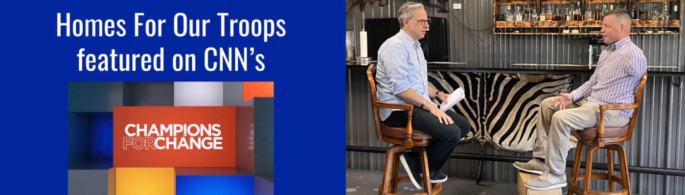 This week, Homes For Our Troops is being featured on CNN’s Champions for Change, a week-long special event highlighting bright examples of humanity who give hope and inspiration. Long-time HFOT Ambassador Jake Tapper hosts the segment and he interviews HFOT Board Member and HFOT home recipient Marine Sergeant Adam Kisielewski, who lost two limbs while serving in Iraq.
