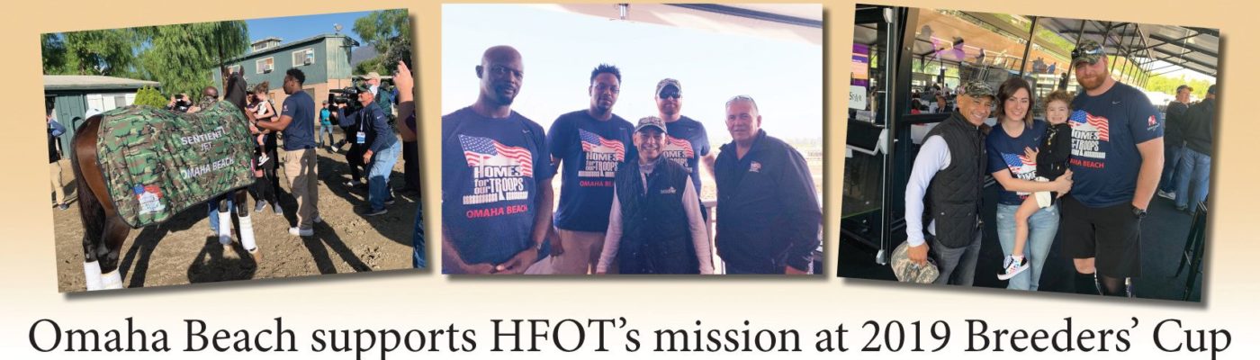 Thoroughbred Omaha Beach is championing the Homes For Our Troops mission at the Breeder’s Cup this Saturday, Nov. 2, 2019. Sentient Jet, a Directional Aviation company, is again teaming up with Homes For Our Troops for this weekend’s race by sponsoring thoroughbred Omaha Beach to raise awareness for HFOT’s mission of building and donating specially adapted custom homes for severely injured post-9/11 Veterans across the country.