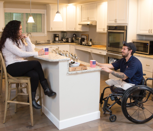 Stateside, following a sixteen-month stay at Bethesda Naval Medical Center in Maryland, Michael returned home to find his day-to-day life radically altered—in large and small ways. A simple task like boiling a pot of water became a dangerous undertaking with a stove too high to reach from his wheelchair. Narrow doorways and hallways restricted Michael’s mobility in his non-adapted home, making it difficult to move from room to room.