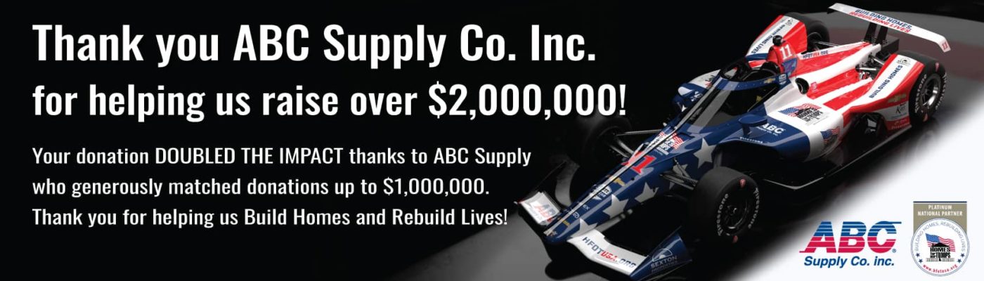 “Grateful doesn’t begin to cover how we feel about ABC Supply’s sponsorship and support,” says HFOT President and CEO Tom Landwermeyer. “The IndyCar donation gave us incredible visibility during one of the largest single-day sporting events in the world, and it means so much to have a whole new audience aware of our mission.”