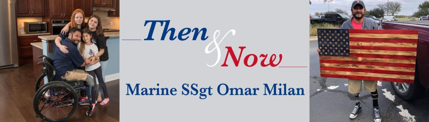 THEN: Immediately after being seriously injured in Afghanistan in 2012, Marine Staff Sergeant Omar Milan’s main concern was getting back to his family. He had lost his right leg and several fingers in an improvised explosive device (IED) explosion, and his condition was so severe his wife, daughters, parents, and sister traveled to be at his bedside in Germany. Omar started to improve within days, and he believes his family’s presence and hearing their voices gave him the strength he needed to pull through.